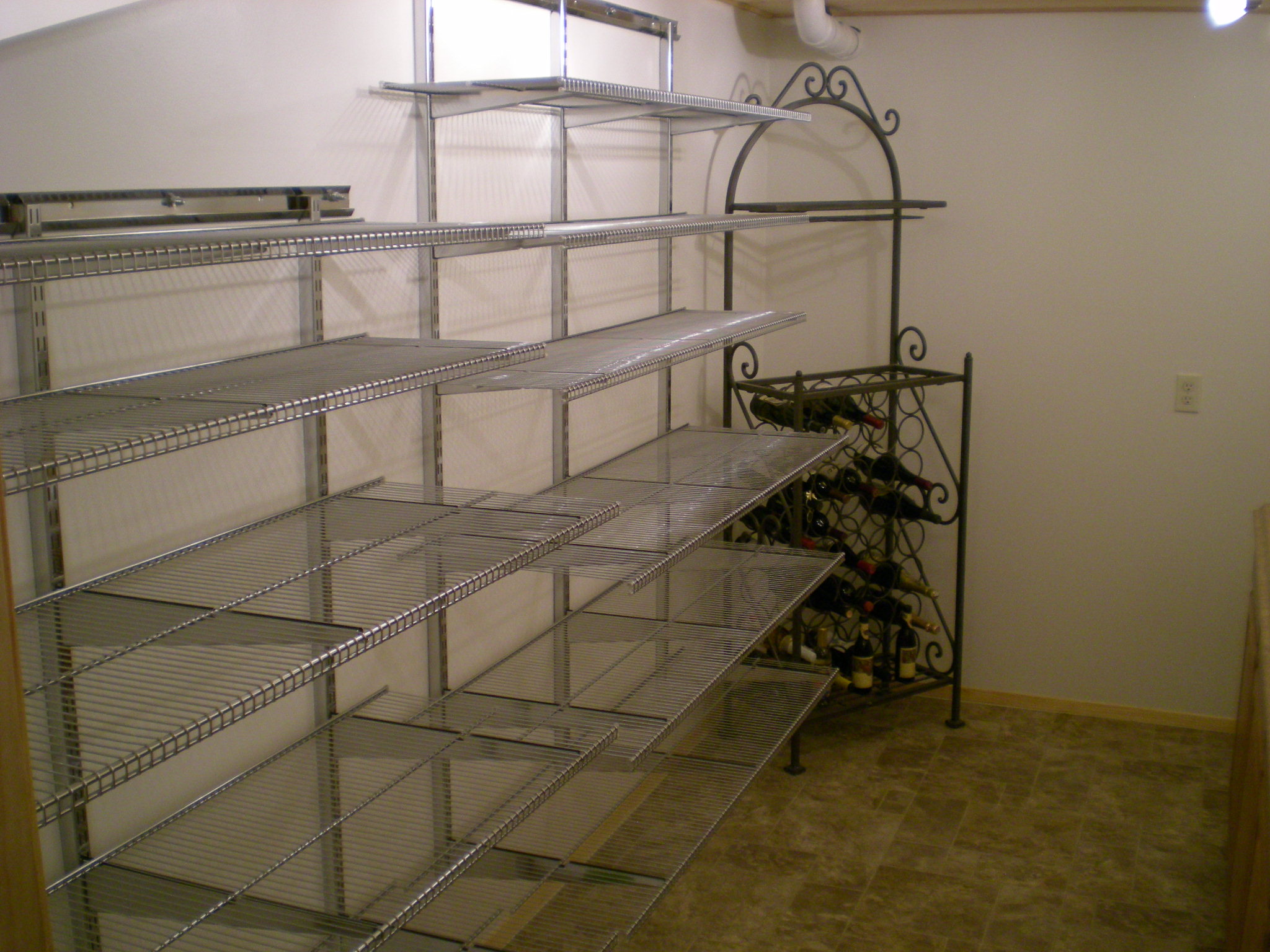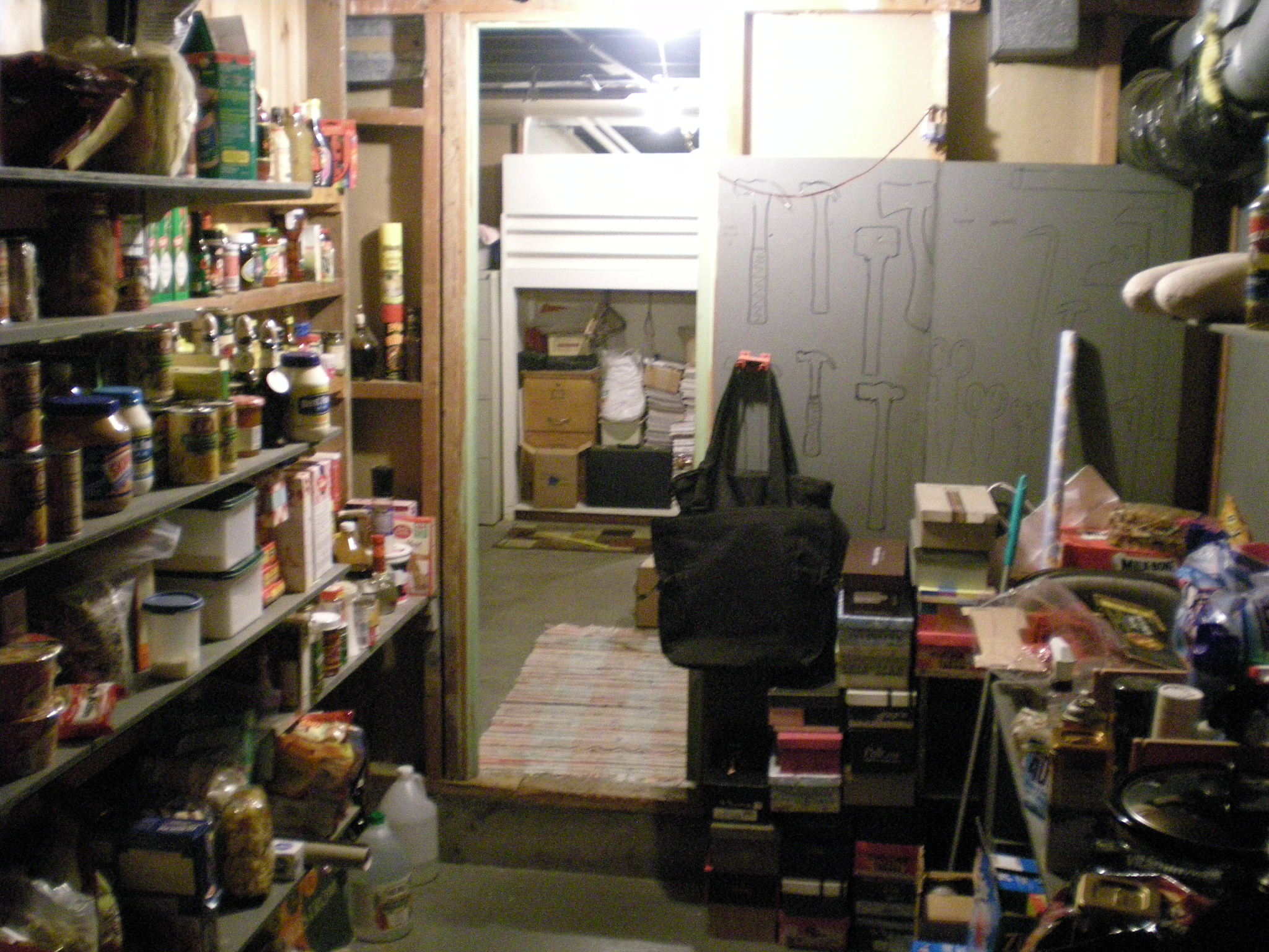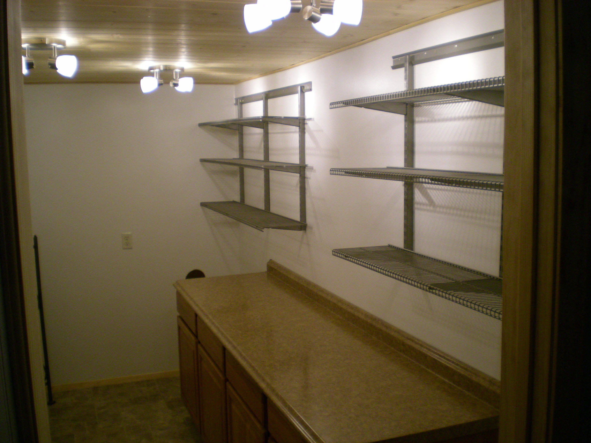 Do you have a closet or work space in your basement that you would like to turn into better storage for food and dry goods? Many kitchens have some sort of pantry but there is never enough room. How about making an extension pantry in your basement? The panty below used to be an 8 by 14 tool room and work shop in the basement. Later they added a garage and wanted to turn this space into something special, an extra pantry!