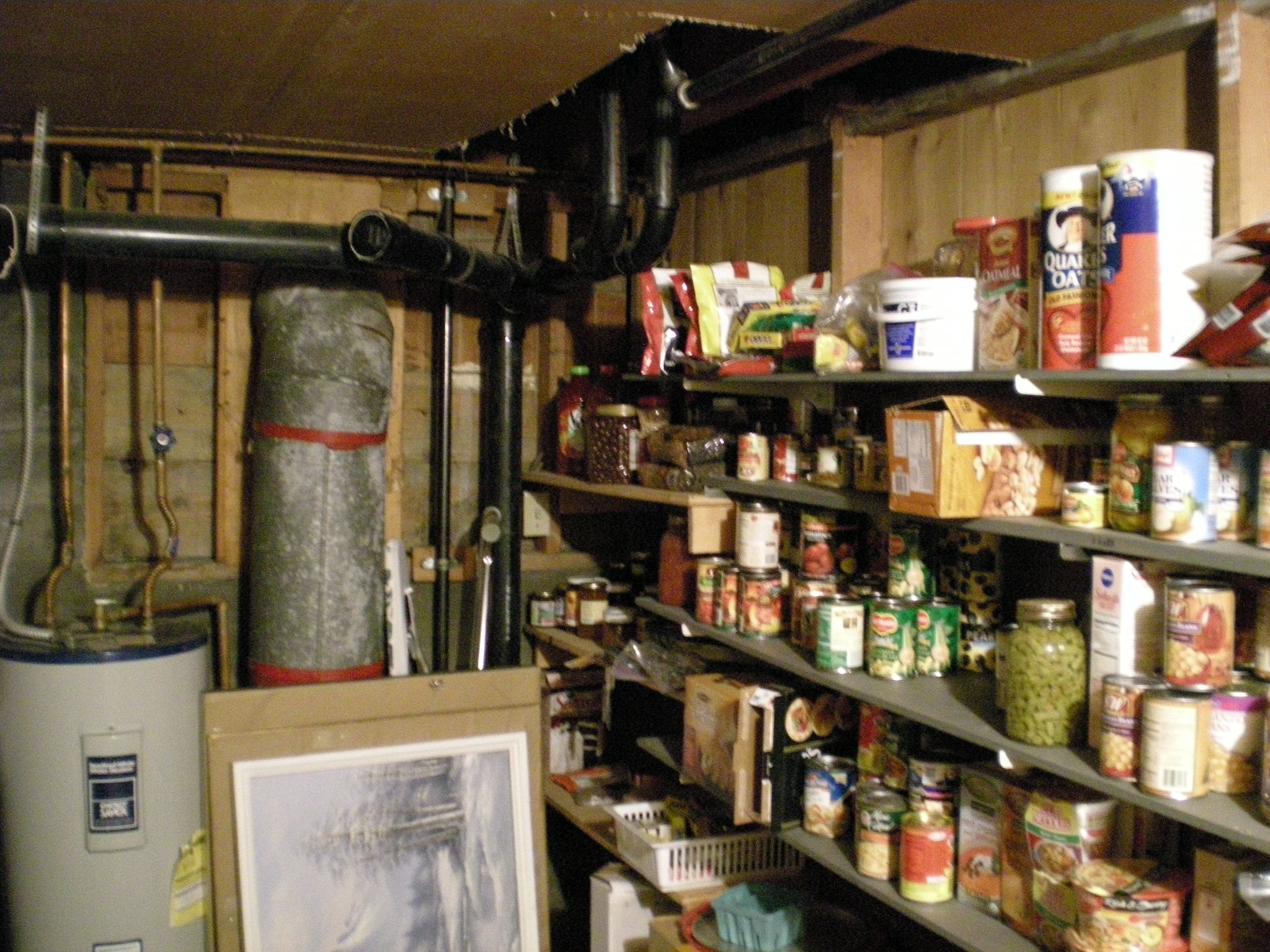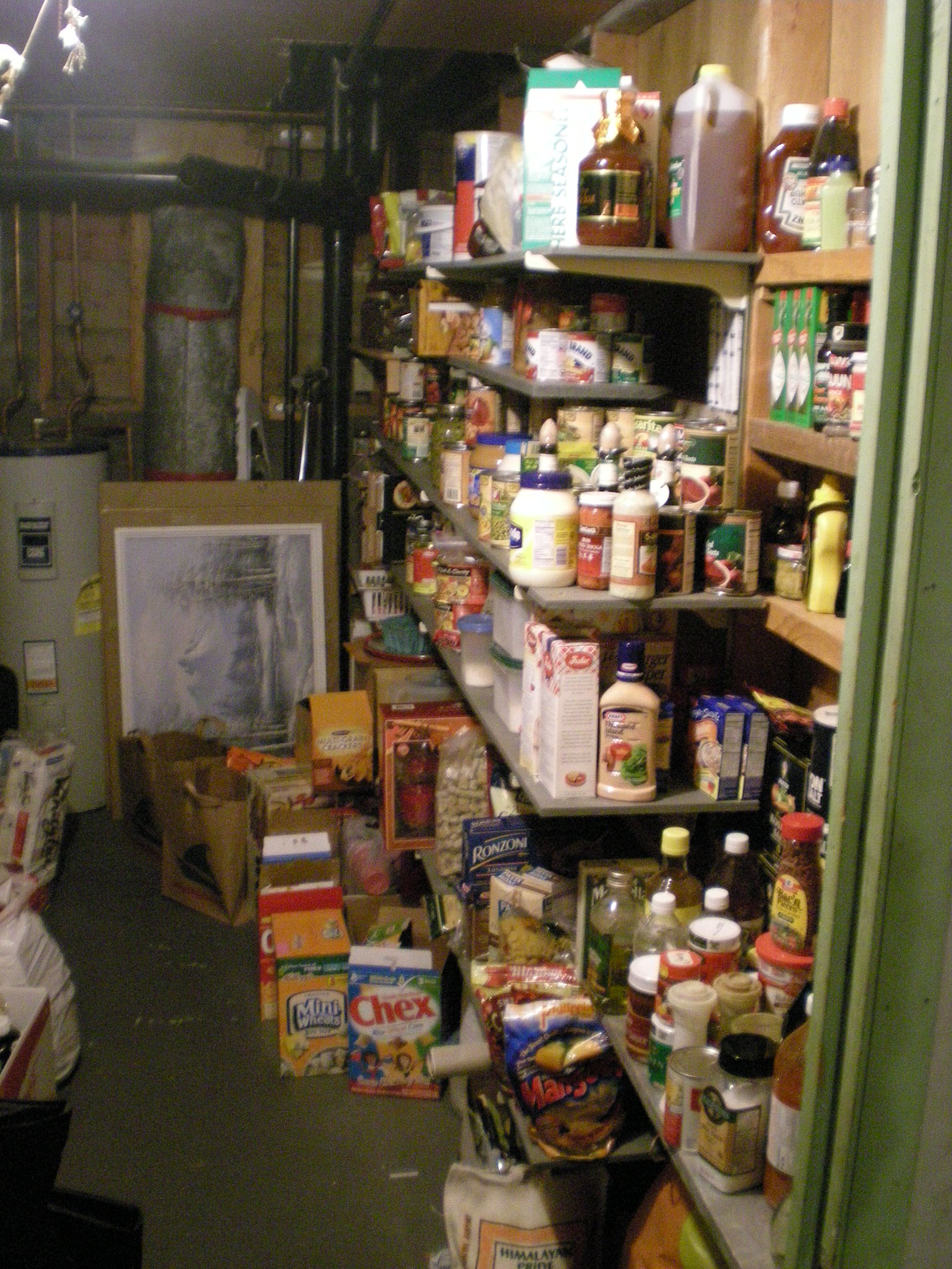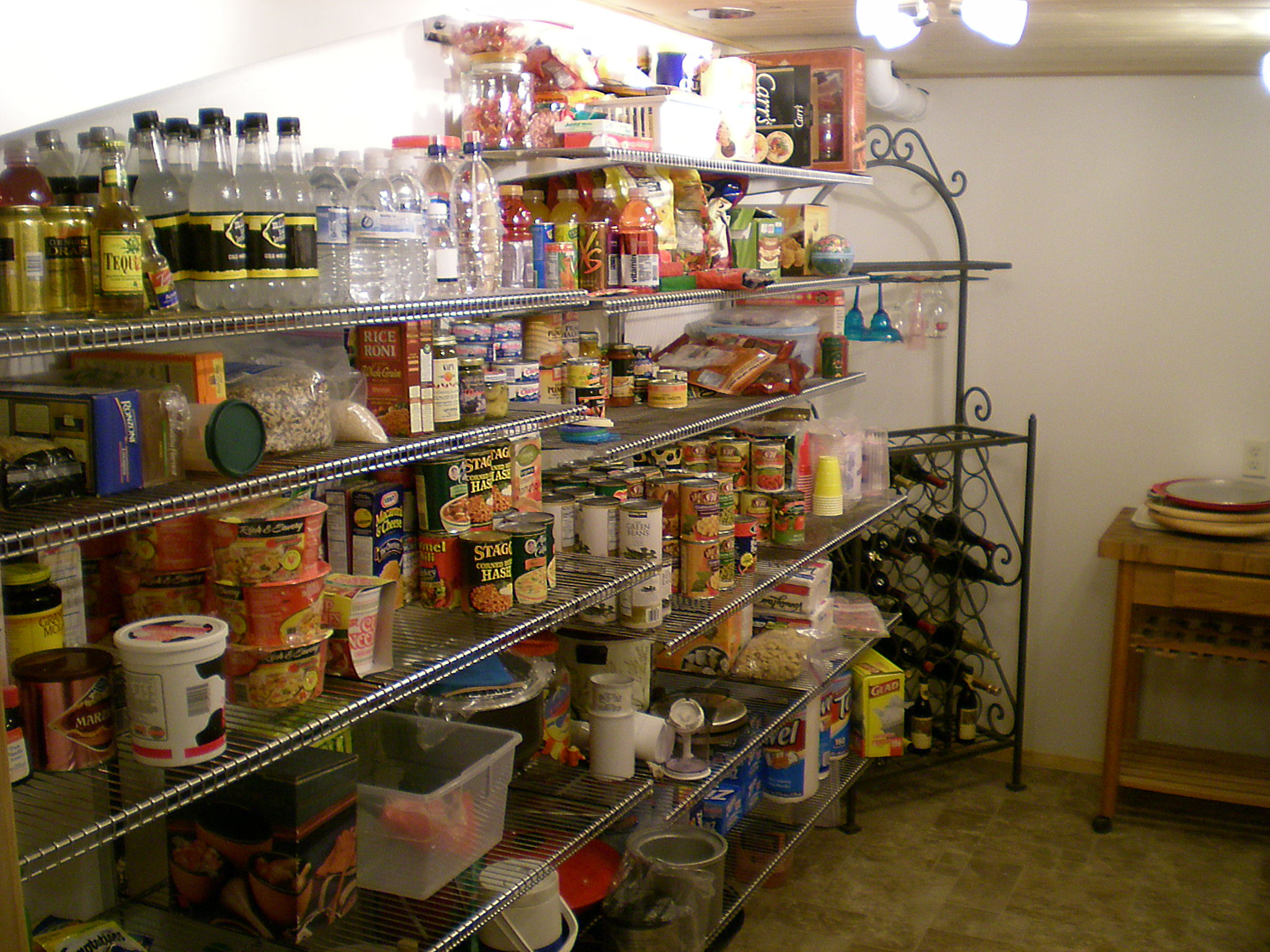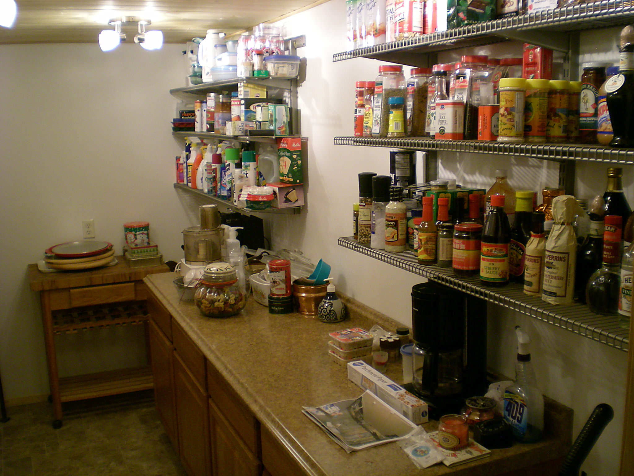 Do you have a closet or work space in your basement that you would like to turn into better storage for food and dry goods? Many kitchens have some sort of pantry but there is never enough room. How about making an extension pantry in your basement? The panty below used to be an 8 by 14 tool room and work shop in the basement. Later they added a garage and wanted to turn this space into something special, an extra pantry!