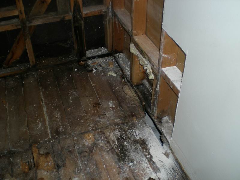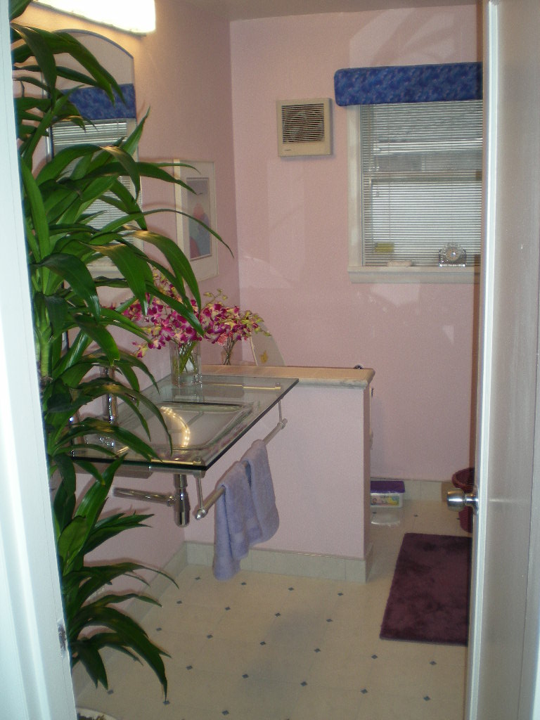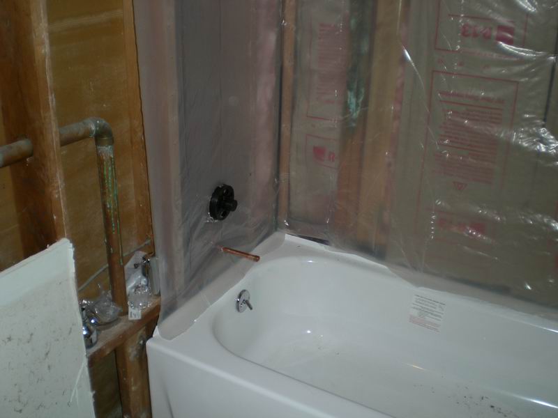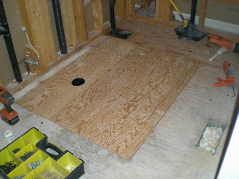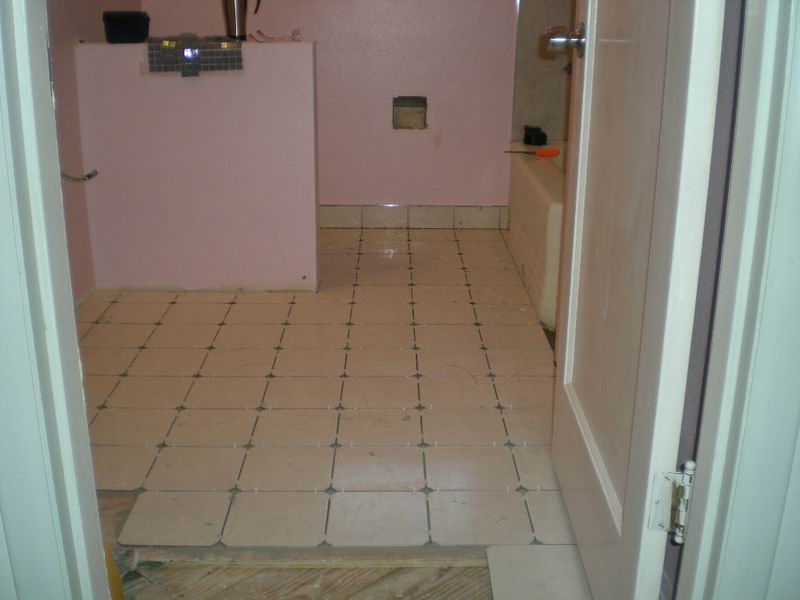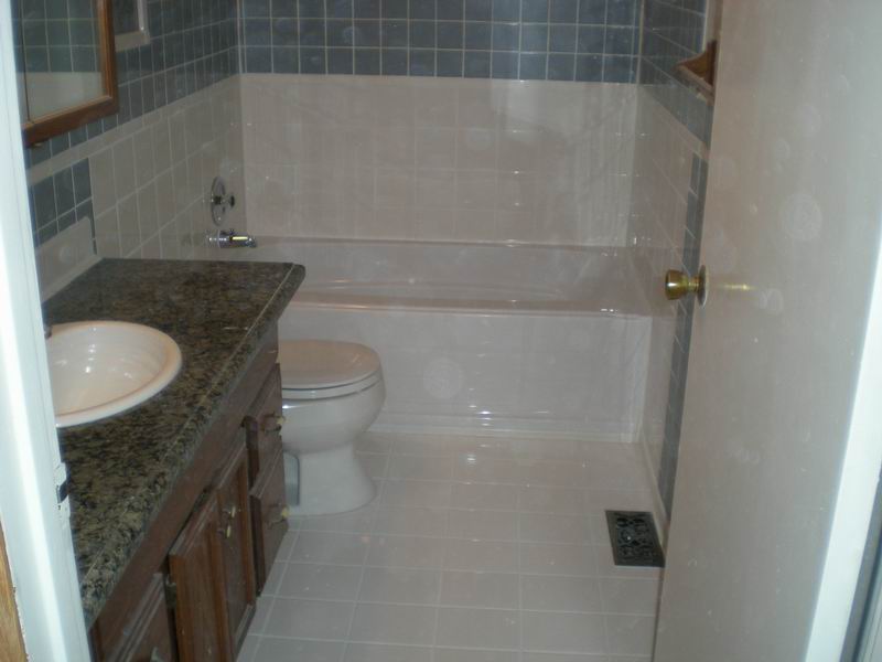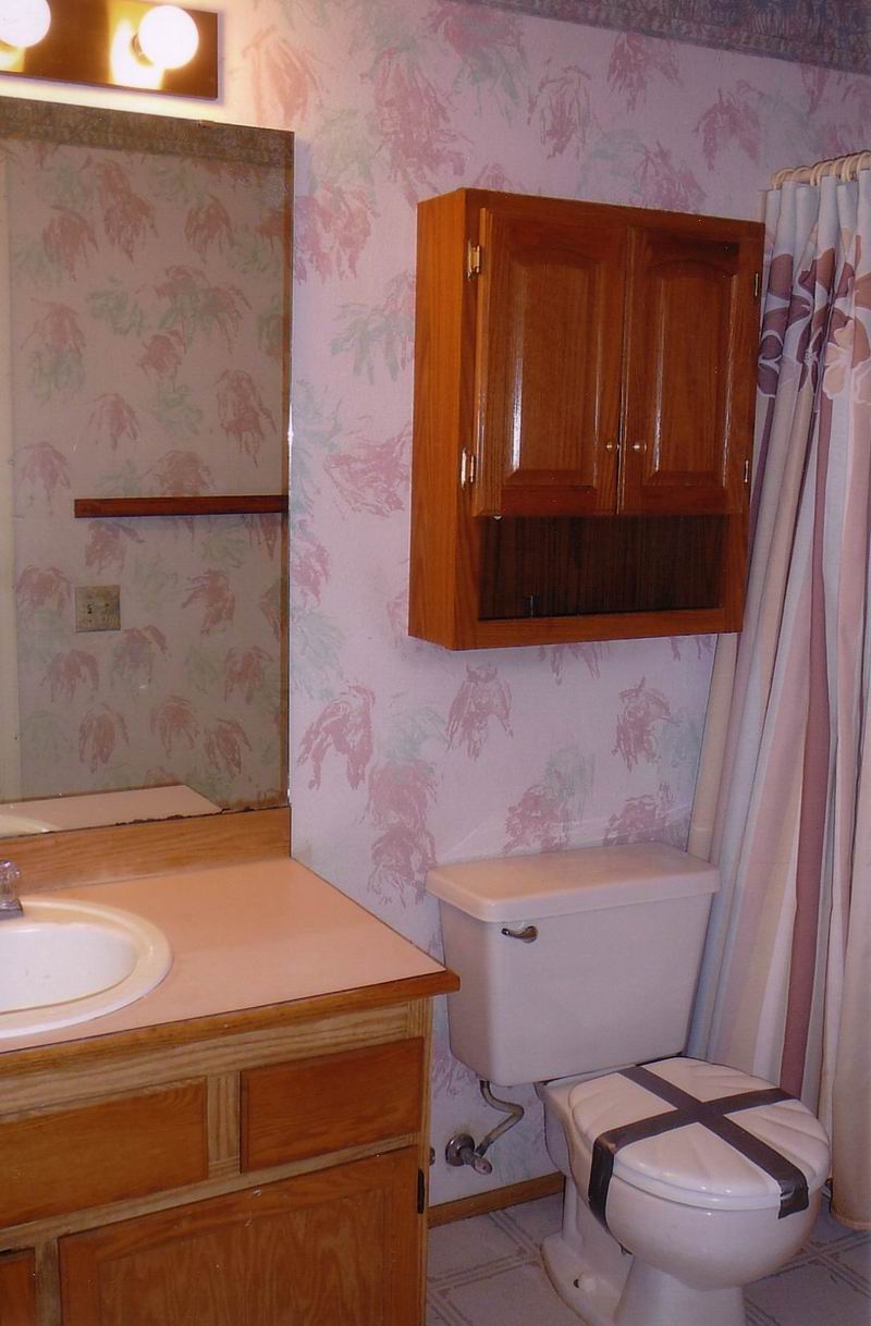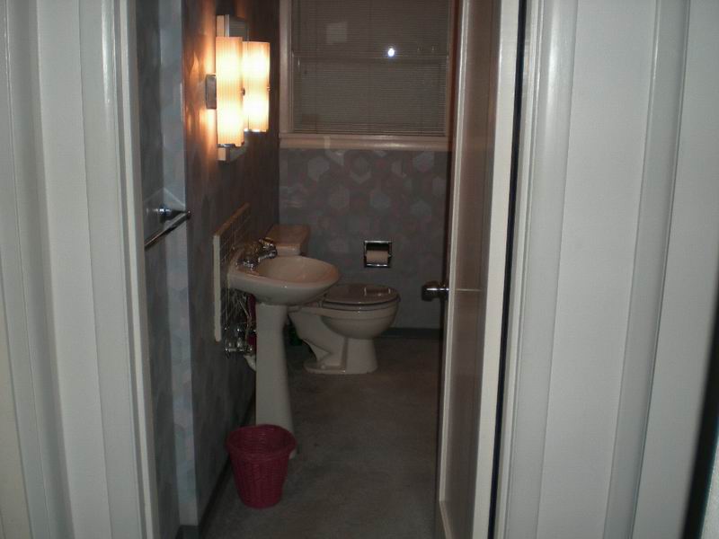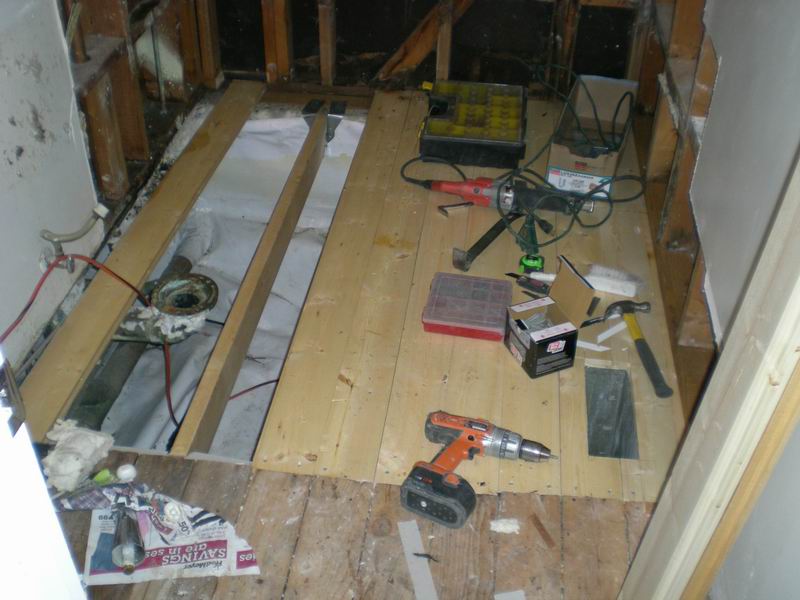 Our first bathroom here was too small for the owner. We moved the back wall 18 inches for more room. There were also some repairs needed which were done before the remodel