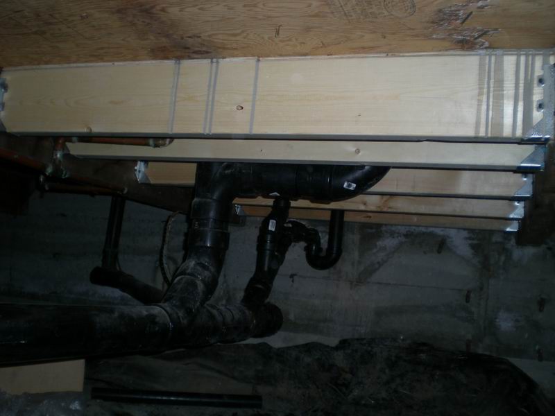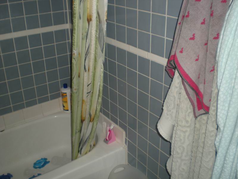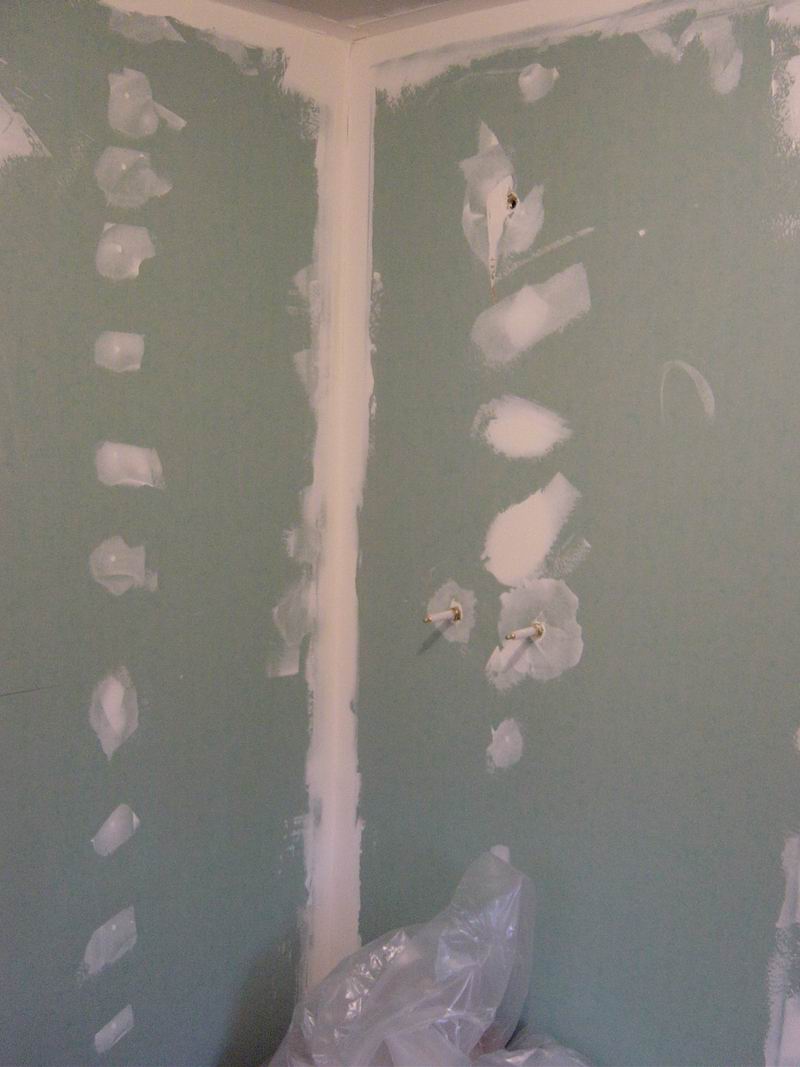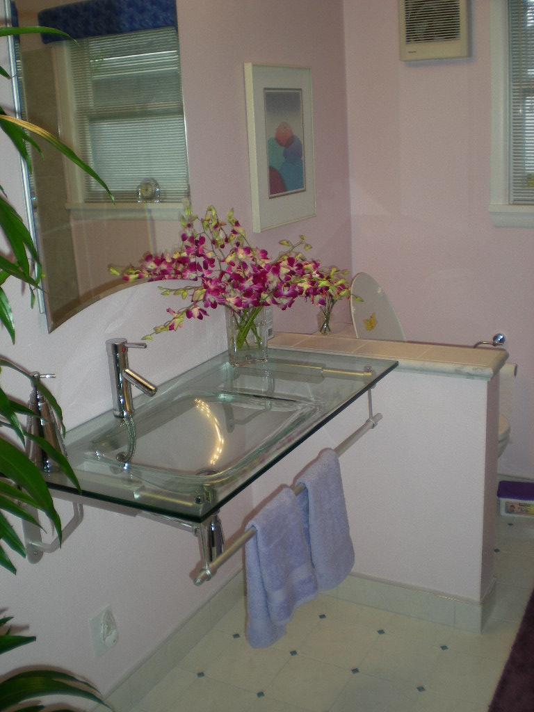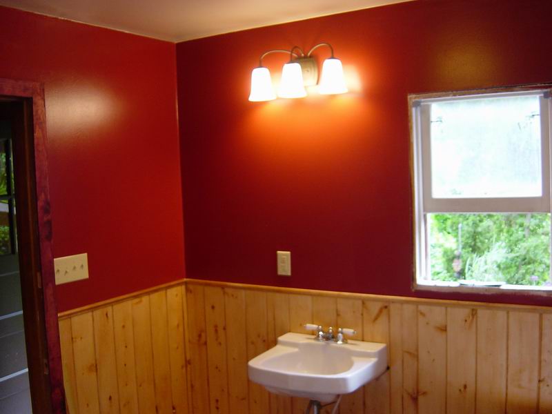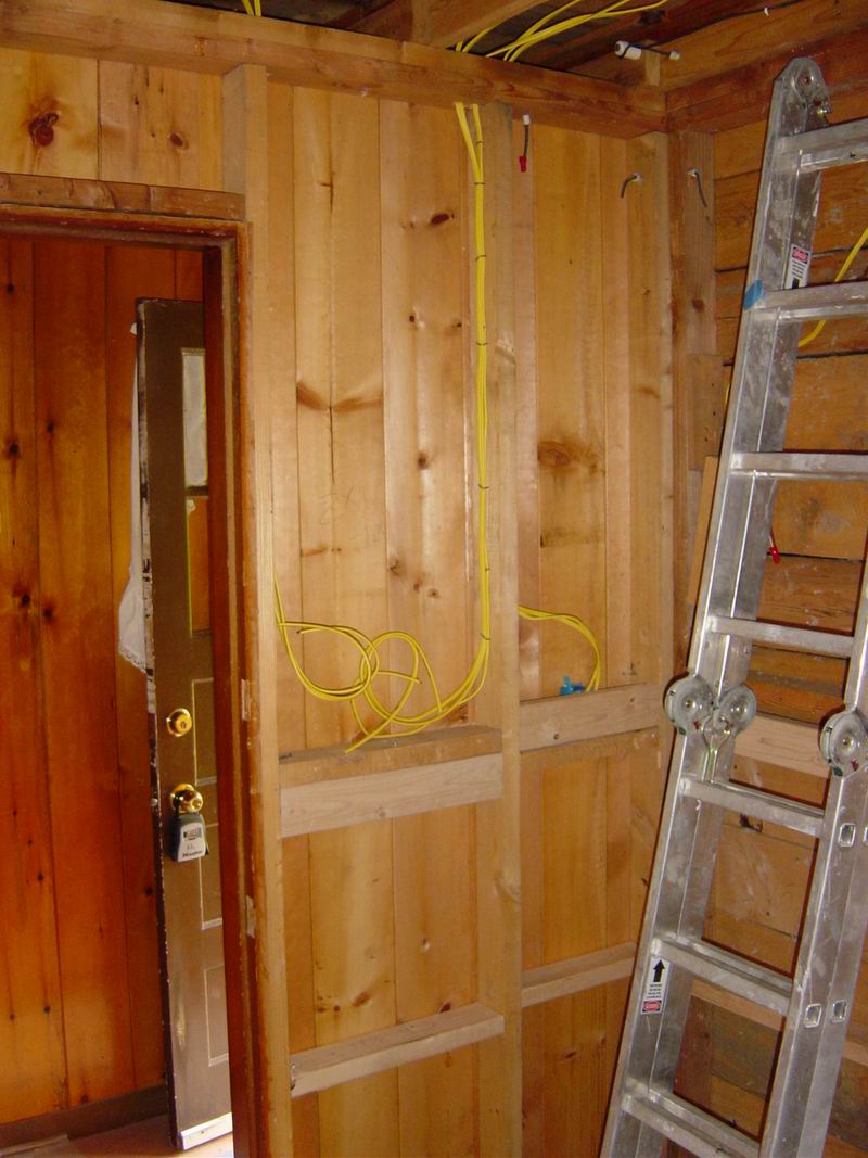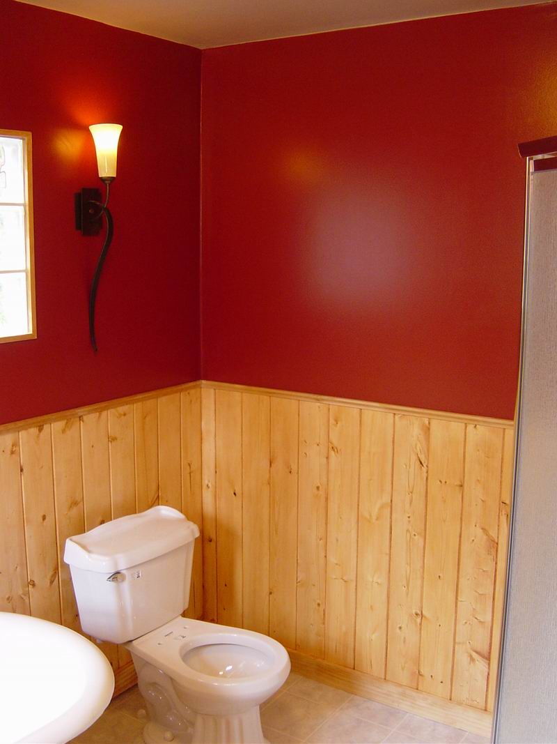 Our first bathroom here was too small for the owner. We moved the back wall 18 inches for more room. There were also some repairs needed which were done before the remodel