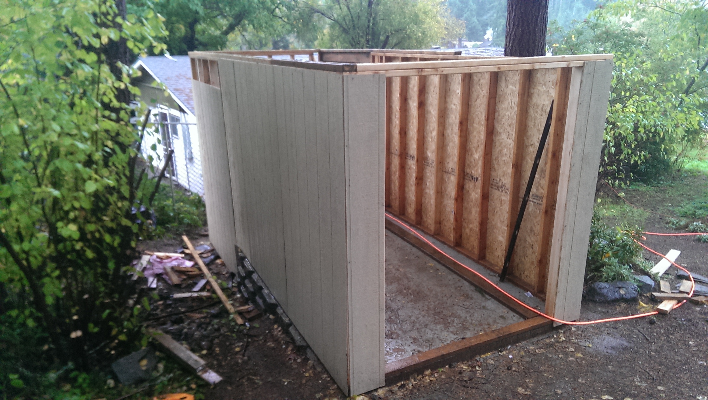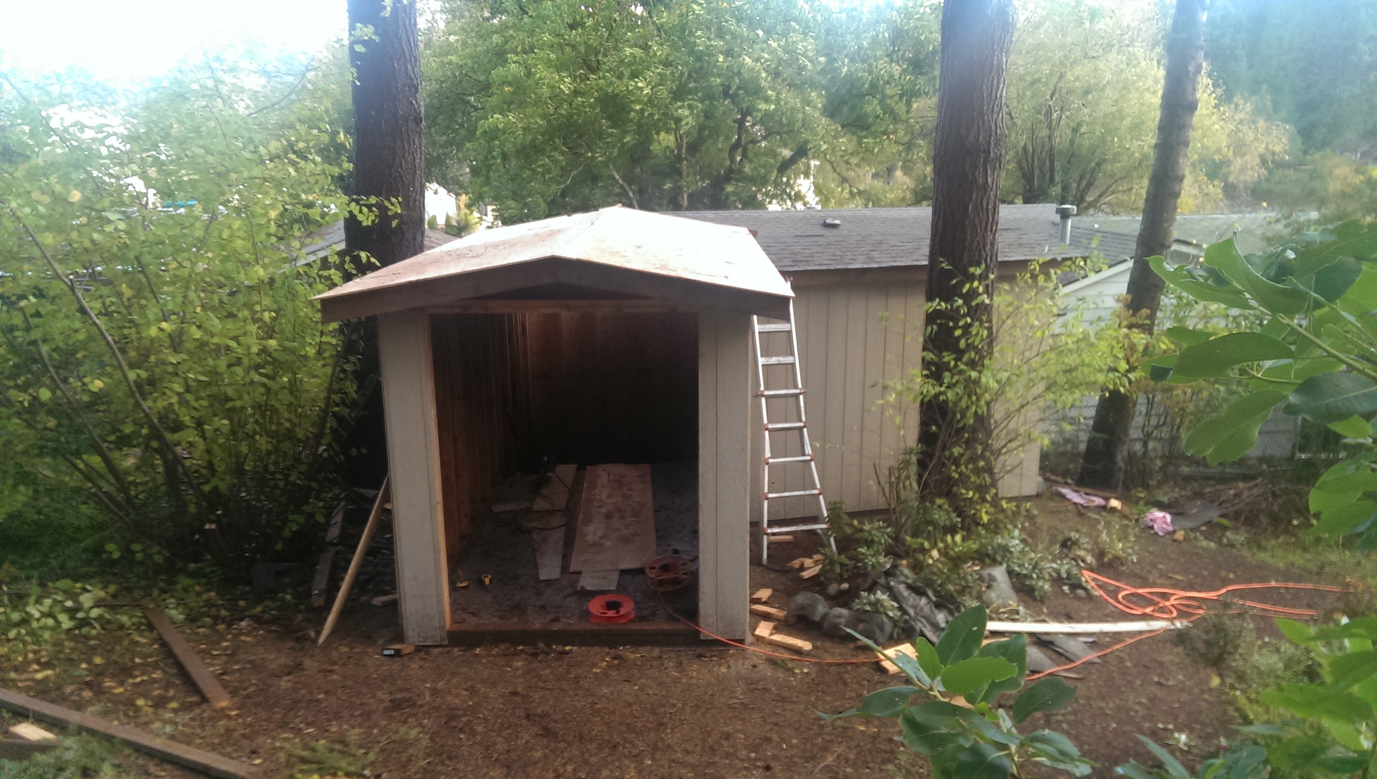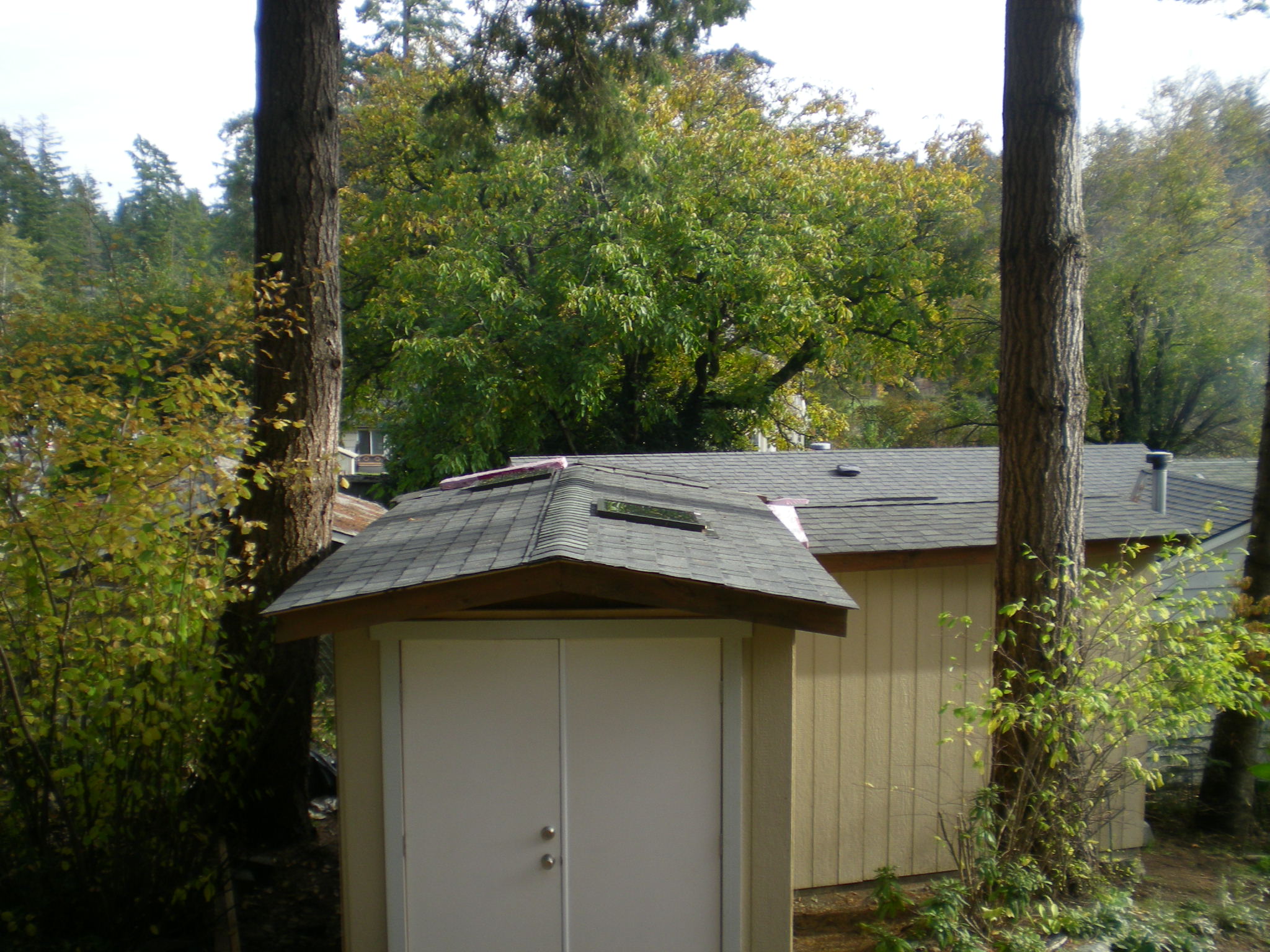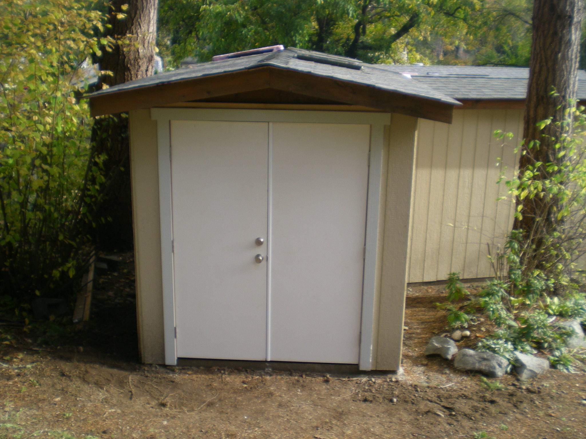 3.  This shed was built on the side of a slope and has two levels.  The upper level is 8 ft wide by 12 ft deep, the lower level is 8 ft wide